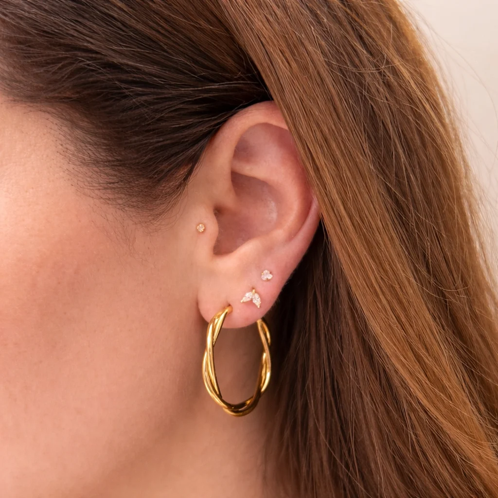 Son ligeros, cómodos y resistentes al agua, lo que los convierte en el complemento perfecto para el día a día sin renunciar al estilo. Su diseño atemporal permite combinarlos fácilmente con otros piercings o llevarlos como pieza protagonista.