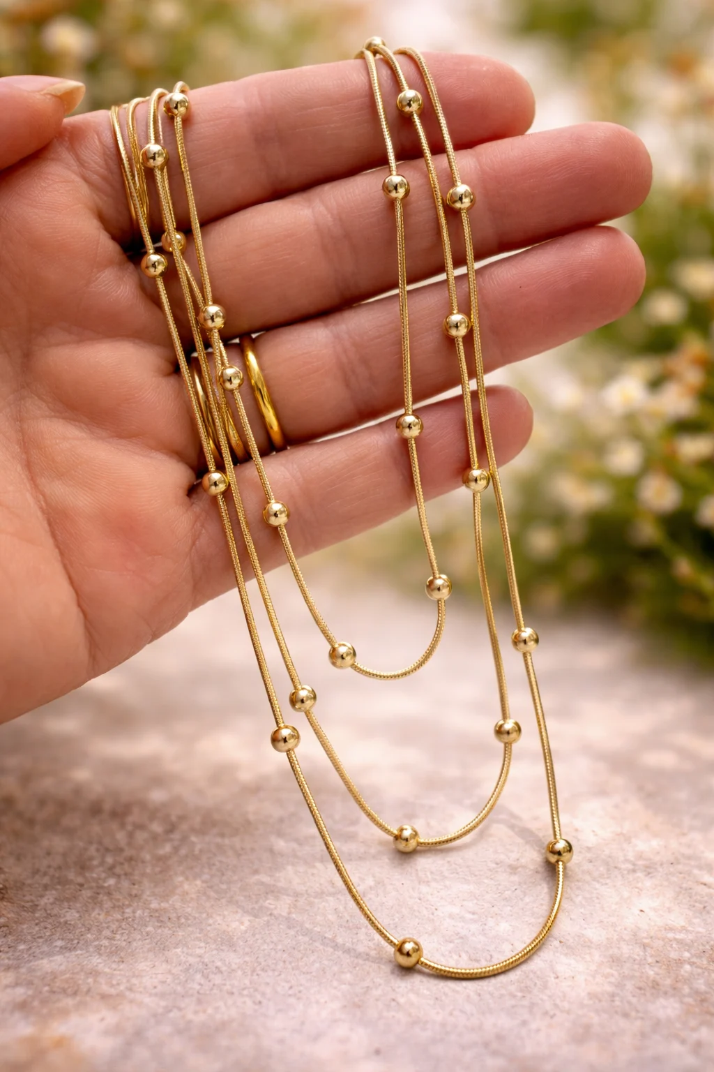 • Diseño: multicadena con esferas decorativas