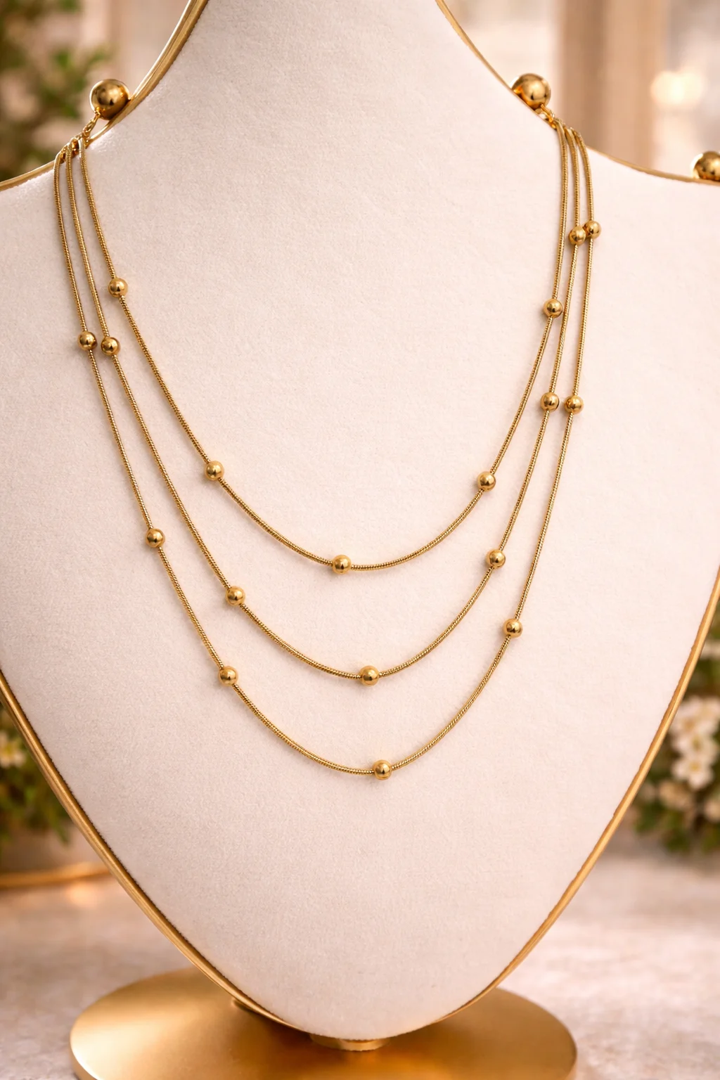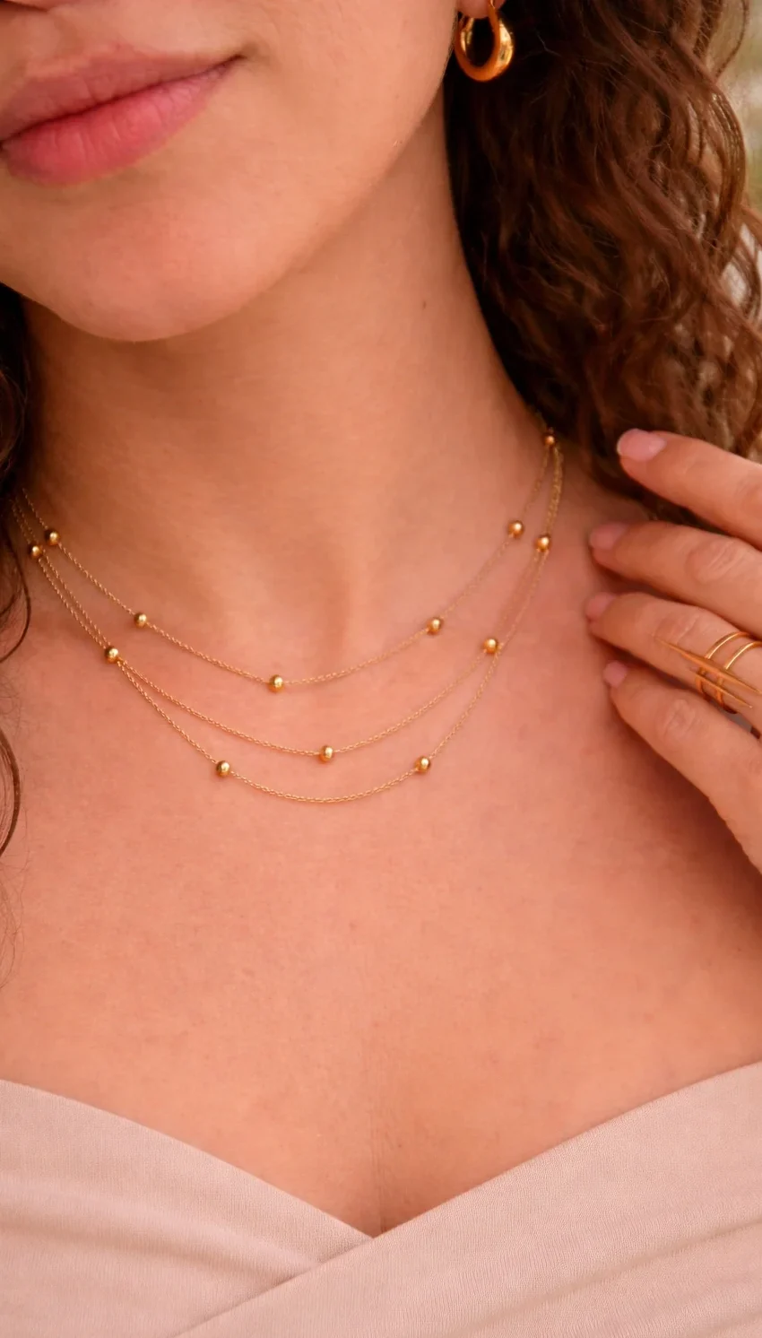 Su caída fluida y su estructura multicadena aportan dimensión sin recargar, convirtiéndolo en un imprescindible en tu colección.