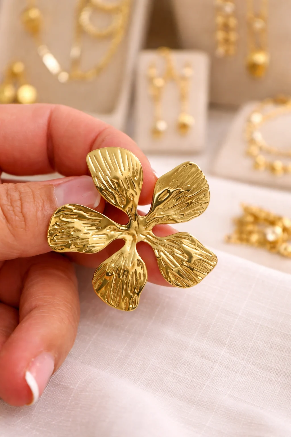 Una flor dorada convertida en joya que aporta luz, estilo y delicadeza a tu look.