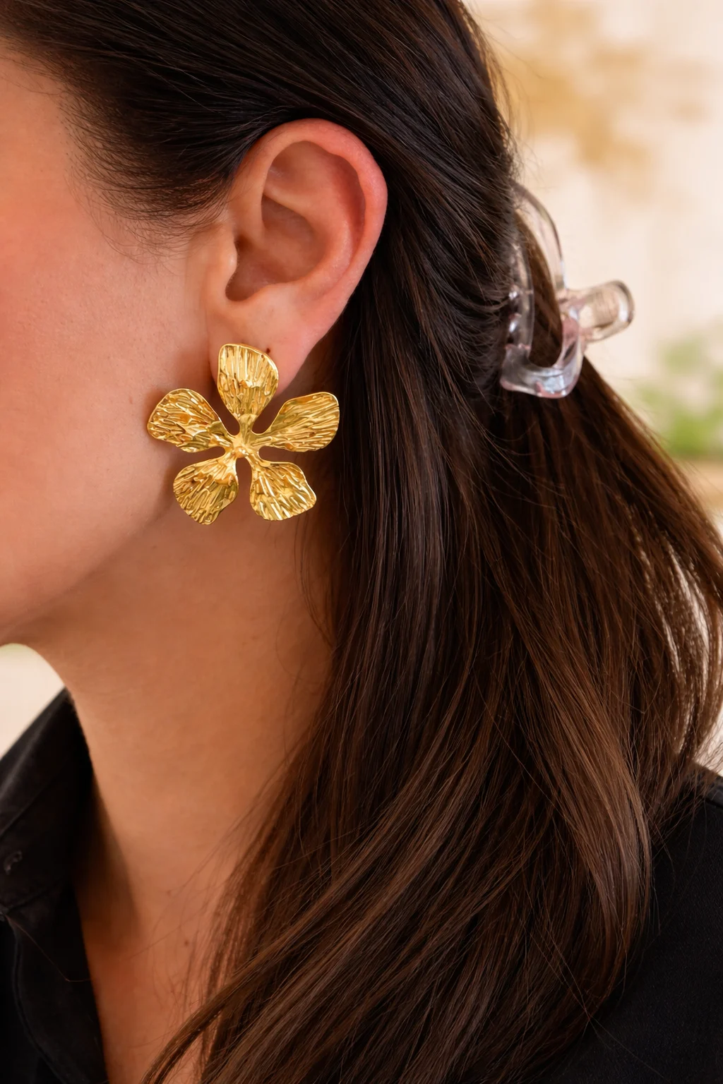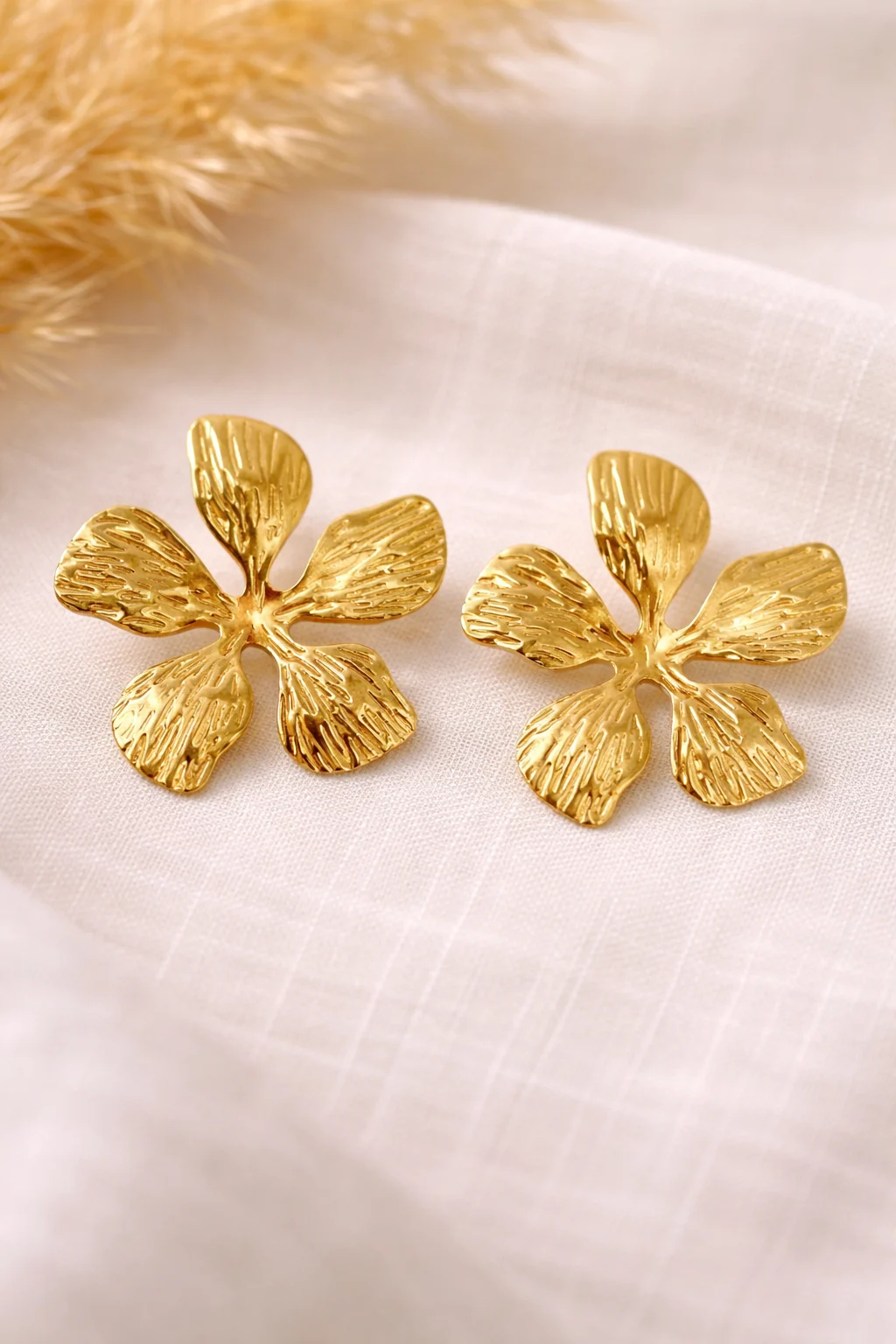 Los pendientes Néctar destacan por su diseño floral orgánico y su acabado dorado brillante. Ligeros, elegantes y con carácter, son el complemento perfecto para elevar cualquier estilo.