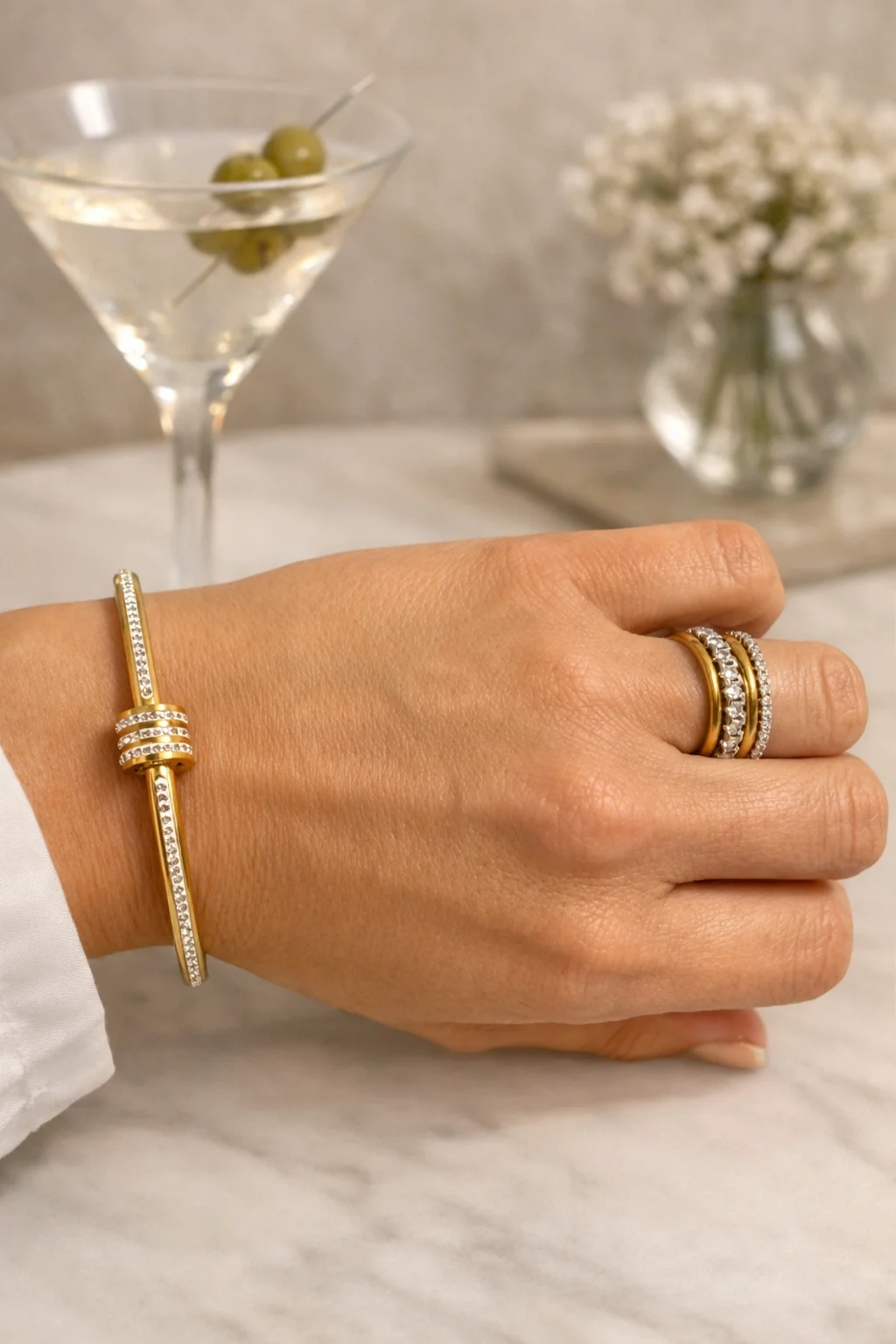 Esta pulsera es perfecta para llevar sola como pieza protagonista o para combinar con otras pulseras creando un estilo moderno y refinado.