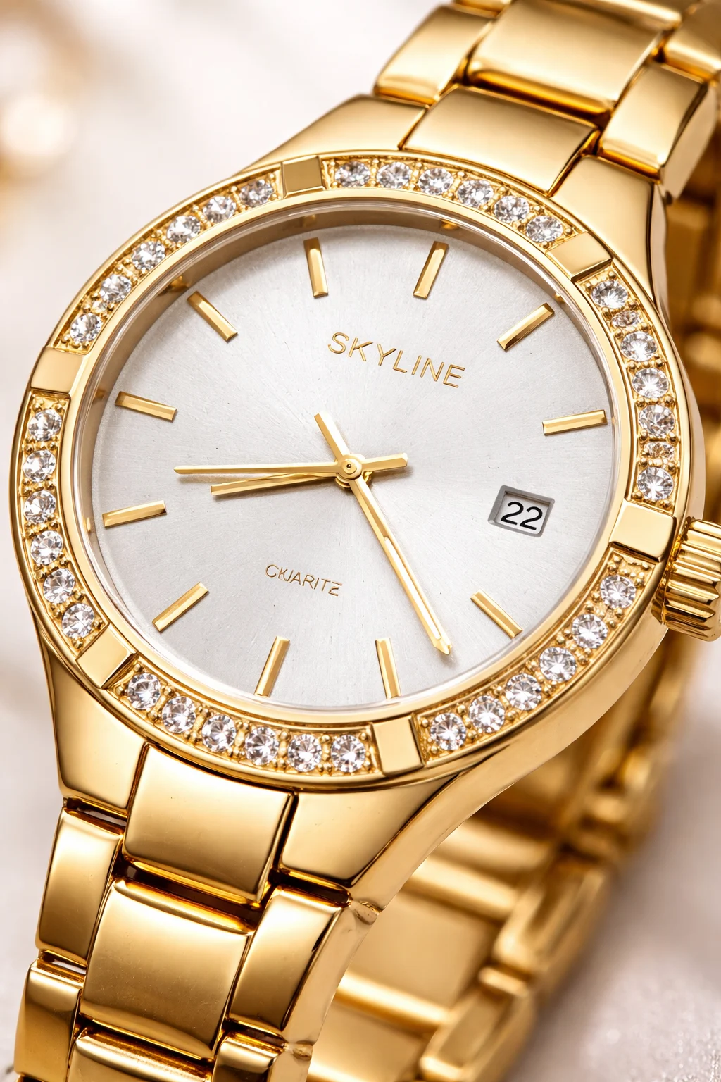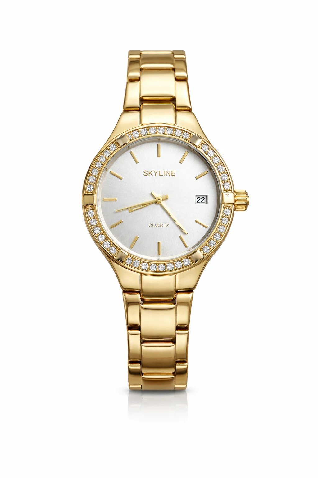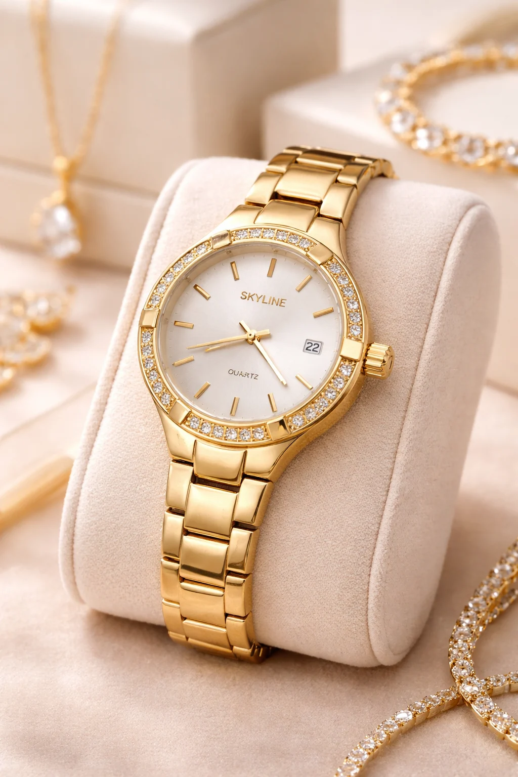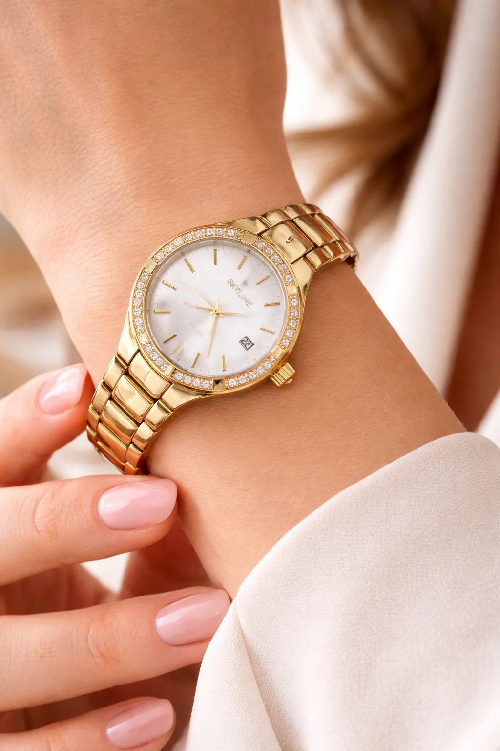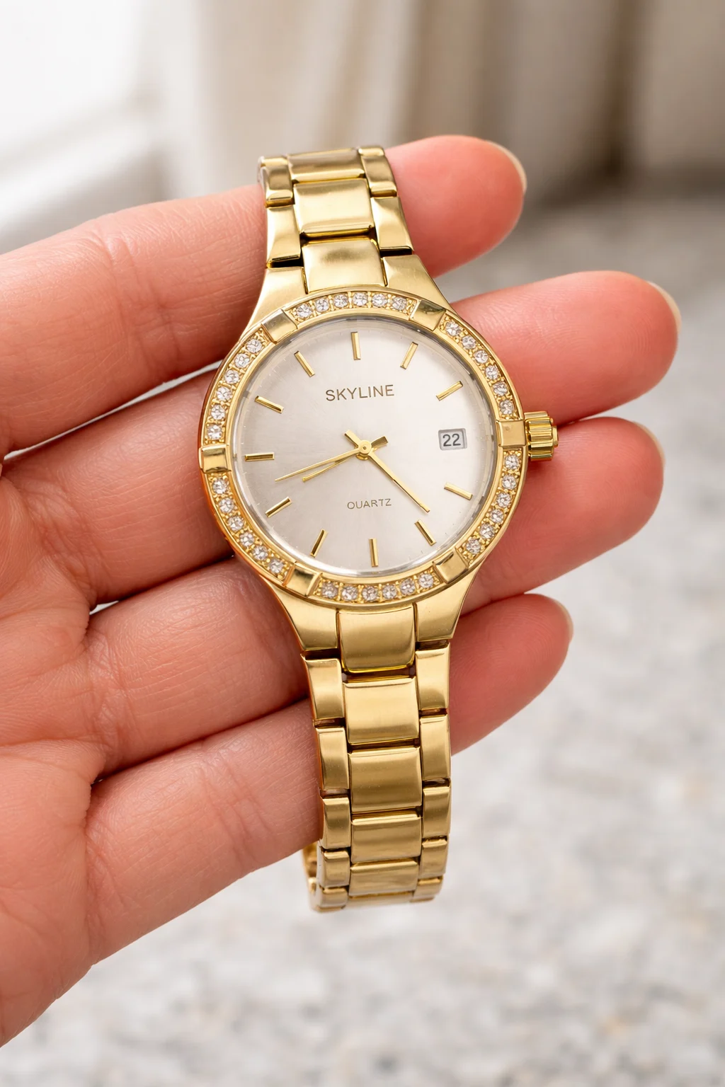 El reloj Eclipse Gold destaca por su diseño elegante y su acabado en acero inoxidable dorado, pensado para mujeres que buscan una pieza sofisticada y versátil.