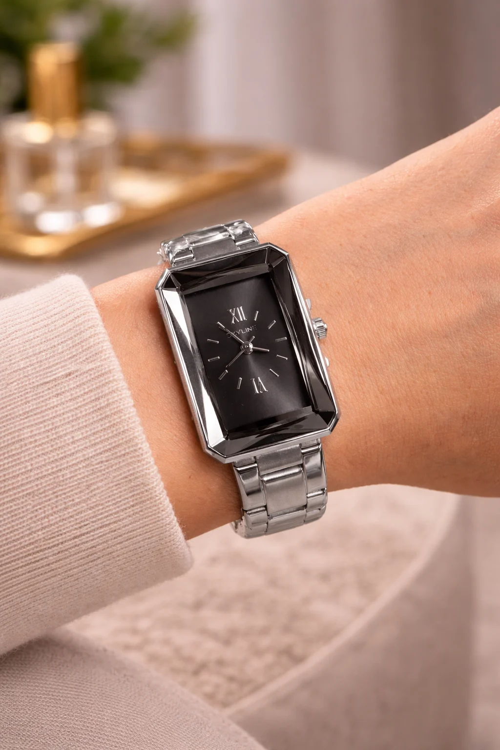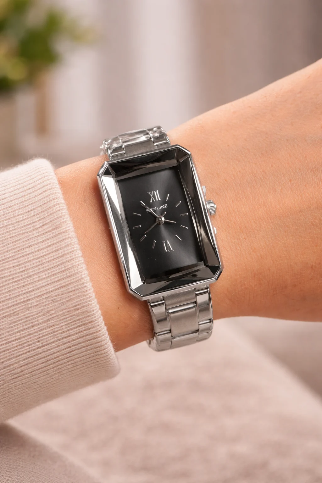 El Skyline Glace Steel es un reloj diseñado para mujeres que buscan elegancia y estilo en una pieza sofisticada. Su diseño rectangular con líneas definidas aporta un aire moderno y refinado que lo convierte en un accesorio perfecto para cualquier momento del día.